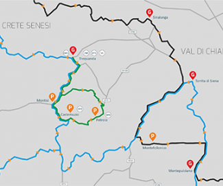 Il facile e breve anello Salimbeni descrive bene il territorio e consente opportune soste con le quali godersi la pace dei borghi di Trequanda. Molti sono però i celebrati percorsi che si possono prendere da Trequanda a partire dall’Eroica Montalcino, al Gigante Bianco, alla GF NY Italia ed al tour Cacciaconti, quest’ultimo consigliato per la splendida escursione che consente di passare dalla terra degli ulivi alle crete senesi.